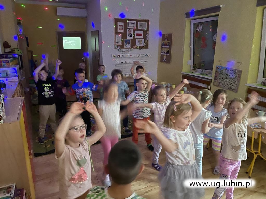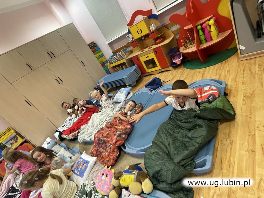 Po wieczorze pełnym wrażeń i emocji wszystkie dzieci udały się na wcześniej przygotowane miejsca do spania. Gdy już wszyscy byli przebrani w piżamki i leżeli na swoich leżaczkach, wspólnie obejrzano bajkę Disneya. Do późnych godzin dzieci tryskały energią, a atmosfera przepełniała dziecięcą radością.