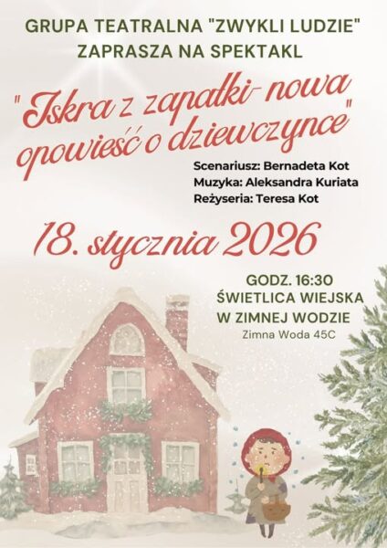 Sztuka wyreżyserowana przez Teresę Kot wystawiona będzie 18 stycznia o 16:30 w świetlicy w Zimnej Wodzie.