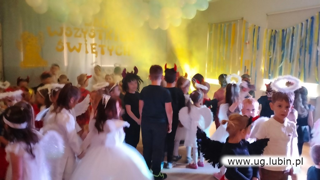 Dzięki zaangażowaniu dzieci i rodziców sala wypełniła się obecnością aniołków ale i również diabełków. Dzieci zostały zaproszone do pociągu świętości i udziału w niebiańskich konkurencjach. Uczestniczyli w