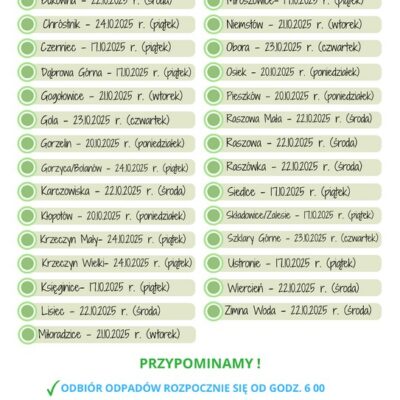 Harmonogram odbioru odpadów: