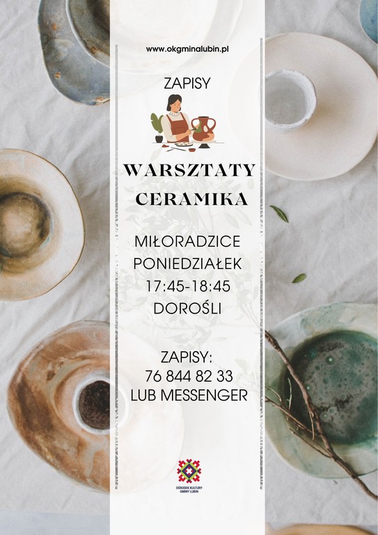 Ośrodek Kultury Gminy Lubin tym razem przychodzi z zaproszeniem dla osób dorosłych. Proponując kameralne warsztaty ceramiczne w Miłoradzicach.