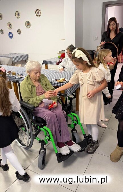 Po występie dzieci wręczyły przygotowane prezenty oraz przekazały upominki od wójta gminy Lubin, Norberta Grabowskiego. To był moment, w którym czas jakby się zatrzymał, liczyła się tylko obecność, ciepło i bliskość drugiego człowieka.