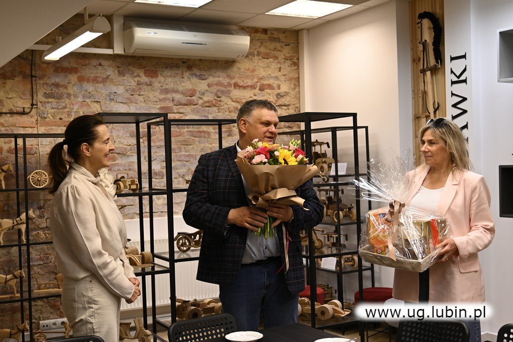 Z okazji przypadającego 29 maja Dnia Pracownika Kultury, pracowników Ośrodka Kultury Gminy Lubin odwiedzili przewodniczący rady gminy Norbert Grabowski oraz Barbara Tórz, kierownik referatu oświaty, kultury, kultury fizycznej i zdrowia. Przekazali bukiet kwiatów, kosz prezentowy i – co najważniejsze – słowa uznania.
