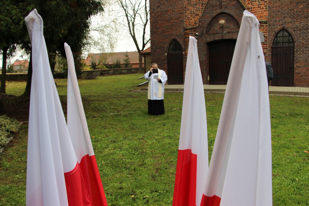 Kisądz Tadeusz Żurek na tle flag