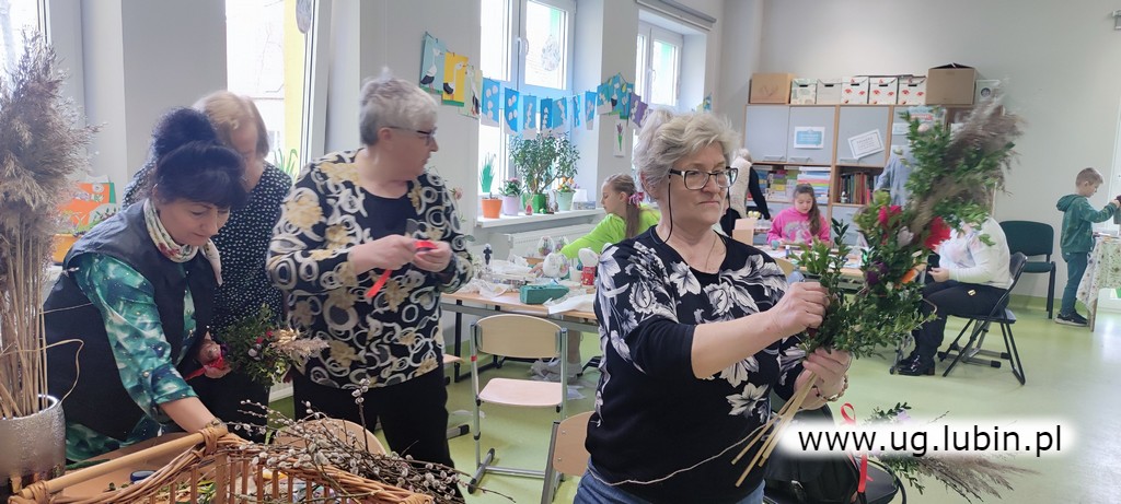 Nastąpiła wspaniała, międzypokoleniowa wymiana doświadczeń. W drugiej części spotkania przystąpiono do działań twórczych. Powstały piękne palmy wielkanocne, kartki świąteczne, pisanki wykonane metodą decoupage. W małych przyozdobionych słoiczkach posiano rzeżuchę oraz owies,
