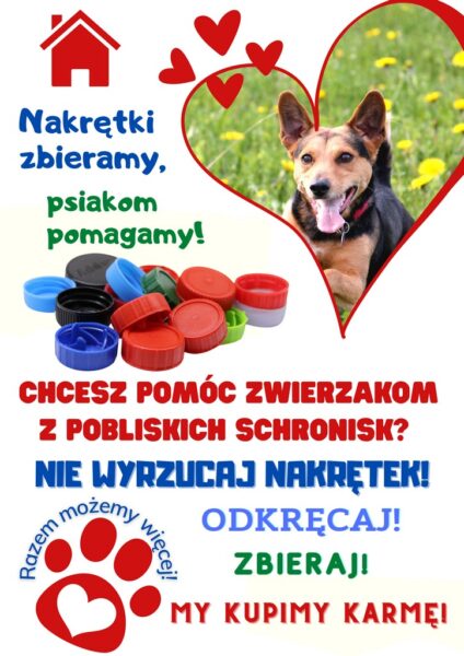 Po raz drugi zachęcamy do przyłączenia się do akcji organizowanej przez mieszkańców Chróstnika. Dzięki  wrażliwości wielu osób, podczas pierwszej edycji udało się zebrać 760 kg. Dochód ze sprzedanych nakrętek przeznaczono na karmę dla zwierzaków. Obdarowane zostały  trzy organizacje pomagające bezpańskim psom i kotom.