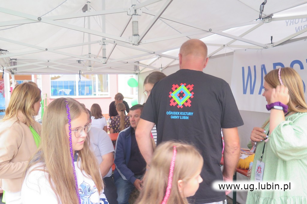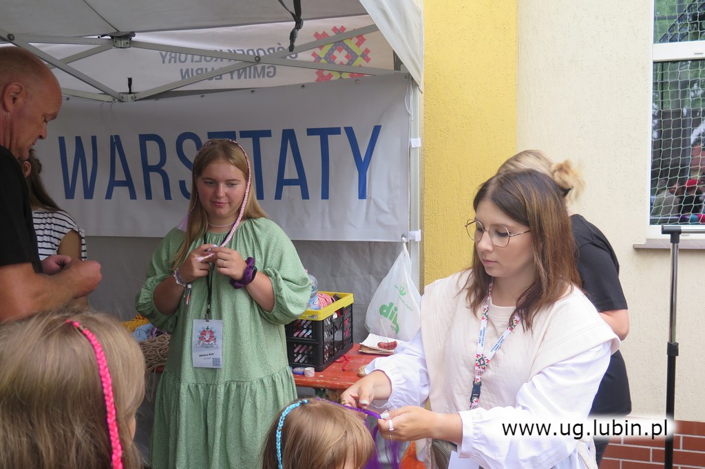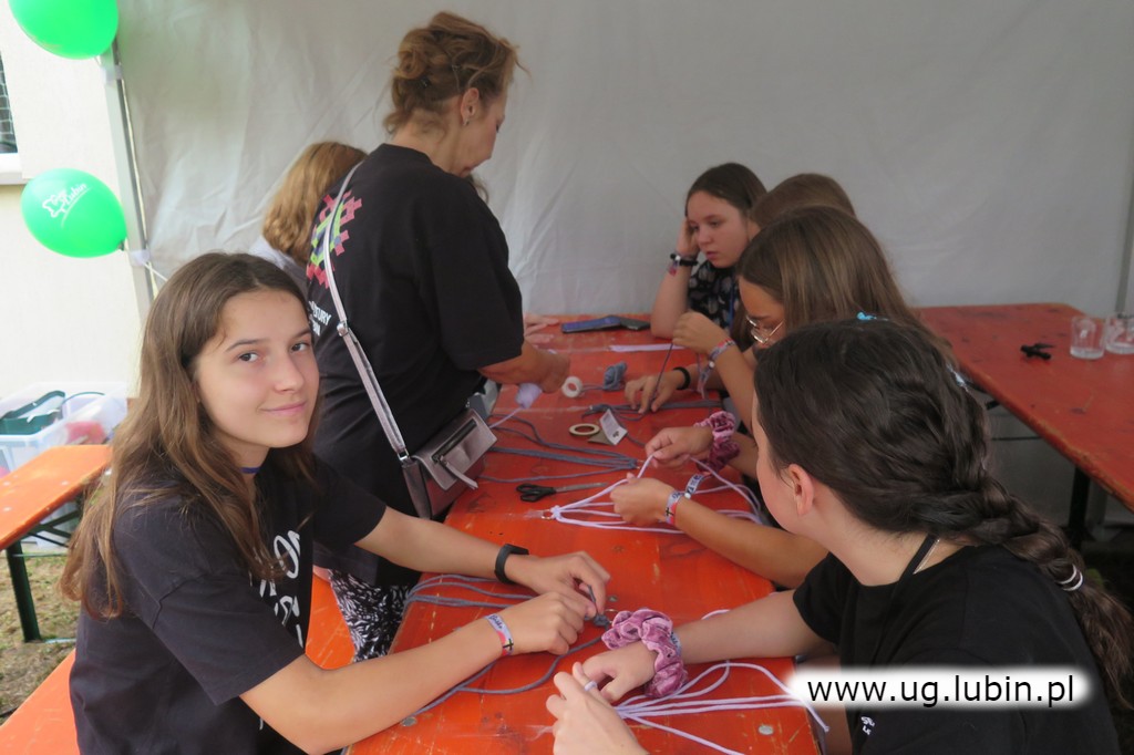 Pracownicy Ośrodka Kultury Gminy Lubin poprowadzili blok warsztatów, między innymi z plecenia makramy czy grawerki. Animatorzy przygotowali dla młodzieży także kolorowe balony, plecenie warkoczyków oraz malowanie twarzy.
