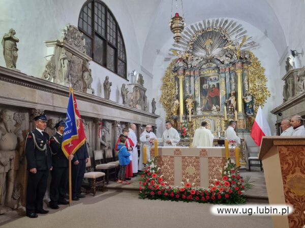 W eucharystii wzięły udział poczty sztandarowe z naszych szkół i jednostek Ochotniczej Straży Pożarnej, uczniowie klasy mundurowej Zespołu Szkół nr 2 w Lubinie oraz chór Via Musica.