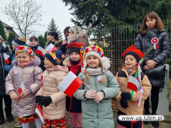 mieszkańców z dumą prezentowało biało czerwone barwy, niosło flagi, przypinało kotyliony. Wiele osób zadbało także o elementy strojów z początku XX wieku, co nadawało wyjątkowego klimatu wspomnieniom z dziejów naszej Ojczyzny.
