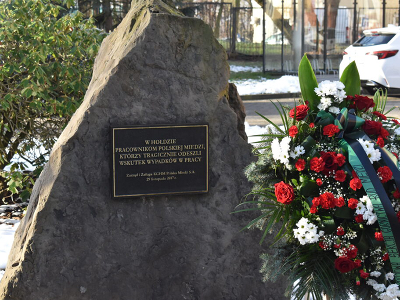 Był rok 2016, kiedy na skutek silnych, następujących po sobie wstrząsów w kopalni Rudna, zginęło ośmiu górników, a kolejnych 21 zostało rannych. To jedna z największych tragedii w historii Polskiej Miedzi. Pamięć ofiar zdecydowano się uczcić ustanawiając 29 listopada Dniem Pamięci Ofiar Wypadków przy Pracy w KGHM. Pamiątkowy obelisk z wrytą tablicą: „W hołdzie pracownikom Polskiej Miedzi, którzy tragicznie odeszli wskutek wypadków w pracy” został ufundowany w 2017 r.