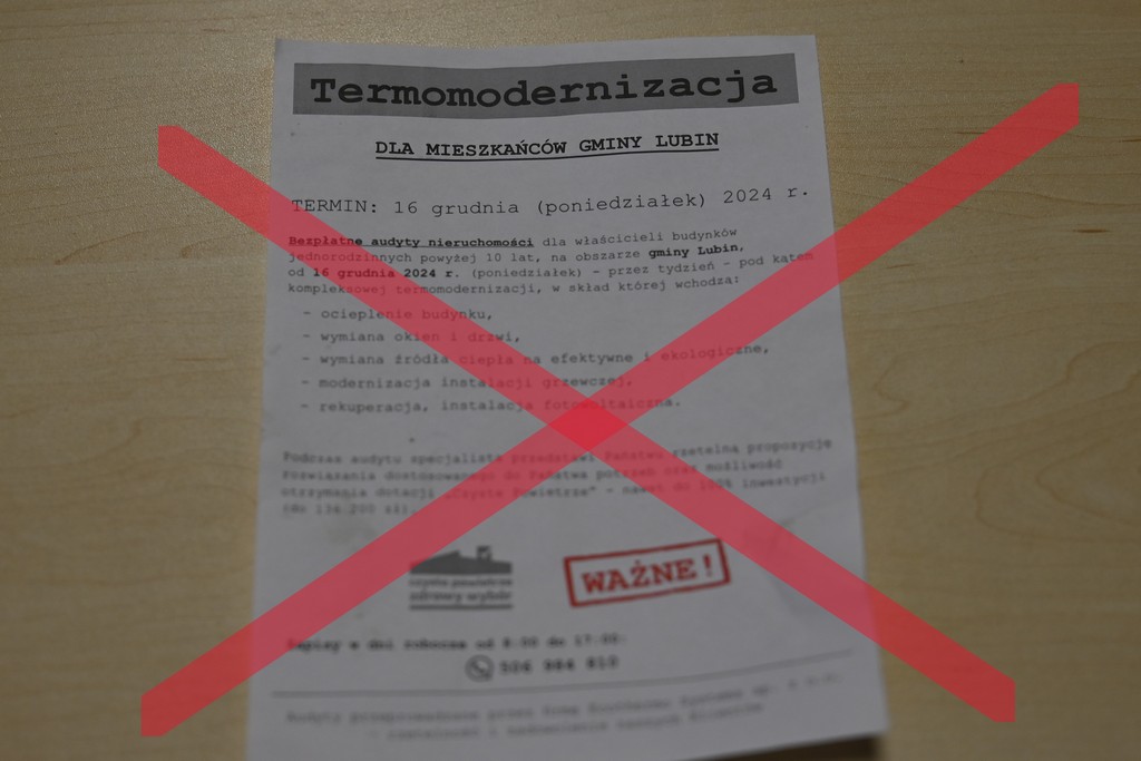 Docierają do nas liczne sygnały od mieszkańców gminy dotyczące propozycji przeprowadzenia audytów nieruchomości pod kątem kompleksowej termomodernizacji przez firmy zewnętrzne. W trosce o naszych mieszkańców, a także mając na uwadze skalę nieuczciwych praktyk związanych z programem „Czyste Powietrze” ponownie przypominamy, że program został zawieszony do końca marca 2025r.