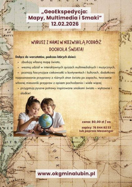 - warsztaty geograficzne – wciągające spotkania z mapami, ciekawostkami o świecie i zagadkami, które pobudzają ciekawość świata