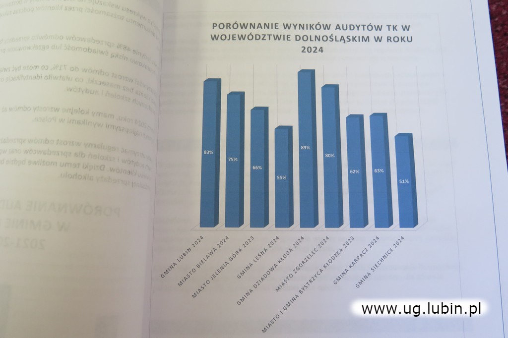 Tzw. „tajemniczy klient”, czyli osoba w wieku 18-20 lat, ale wyglądająca młodziej, próbowała w ramach przeprowadzonego audytu kupić bez dowodu osobistego alkohol w sklepach i lokalach na terenie gminy. W 2021 roku jedynie 48% sprzedawców odmówiło sprzedaży bez okazania dokumentu tożsamości, rok 2023 przyniósł wzrost odmów do 71%, a rok bieżący to już 83% odmów. Stawia to gminę Lubin w czołówce miast i gmin z najlepszymi wynikami w Polsce.