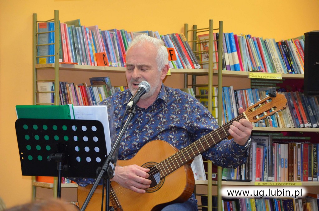 Serca zgromadzonej publiczności, poruszyła niezwykła poezja śpiewana w wykonaniu Wiesława Zalasa, który w przerwie między pytaniami prowadzącej spotkanie, grał na gitarze i śpiewał swoje wiersze.