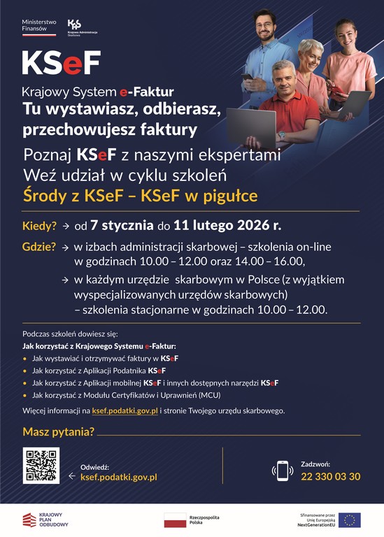 Szkolenia uruchomiono już tydzień temu, odbywać się będą w środy i potrwają do 11 lutego 2026 r. Podczas tych spotkań, zarówno stacjonarnych, jak i on-line, eksperci przekażą przedsiębiorcom najważniejsze i praktyczne informacje dotyczące korzystania z Krajowego Systemu e-Faktur. Treść szkolenia obejmie podstawową i kluczową wiedzę, taką jak: sposób logowania, wystawianie faktur, przeglądanie faktur czy nadawanie uprawnień.