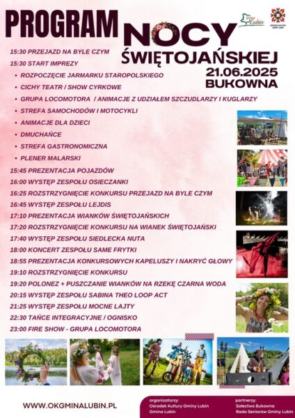 Nie zabraknie także klimatycznych obrzędów i wspólnej zabawy do późnych godzin. Wstęp wolny, wystarczy dobry humor i odrobina świętojańskiej magii. Do zobaczenia w Bukownej!