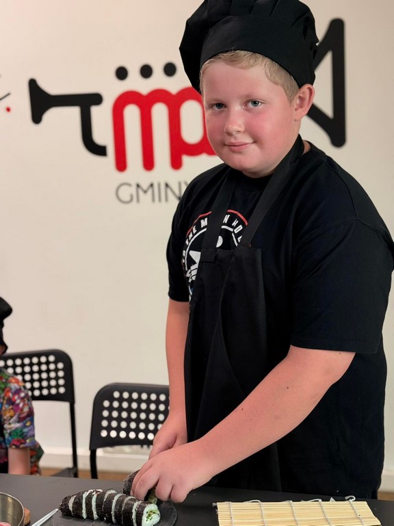 Na kolejnych warsztatach przeniesiono się kulinarnie do Japonii. „Sushi Master” to była nie tylko nauka zwijania rolek i tworzenia kolorowych wrapów, ale też świetna zabawa z eksperymentowaniem smakami. Do tego kreatywne zajęcia rękodzielnicze – breloczki, zakładki do książek i drobne pamiątki własnoręcznie stworzone przez uczestników. Dzień dopełniła wizyta w kinie – bo w końcu wakacje to czas relaksu!