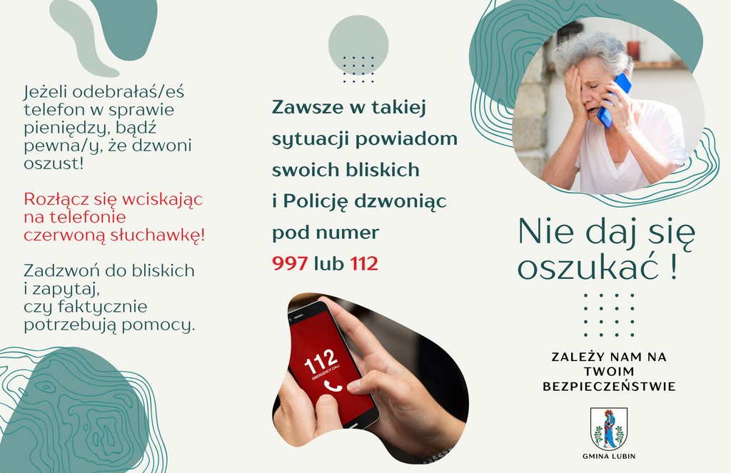 Nie daj się nabrać – przeczytaj i ostrzeż bliskich! Ponad 6 tysięcy rodzin w gminie Lubin otrzyma wraz z decyzją dotyczącą wysokości podatku od nieruchomości na 2025 rok specjalną broszurę informacyjną, przygotowaną w trosce o bezpieczeństwo mieszkańców. To nasza odpowiedź na alarmujące doniesienia policji o licznych próbach wyłudzeń. Gmina opracowała poradnik i sfinansowała jego druk, by każdy mógł dowiedzieć się, jak uchronić się przed oszustami.