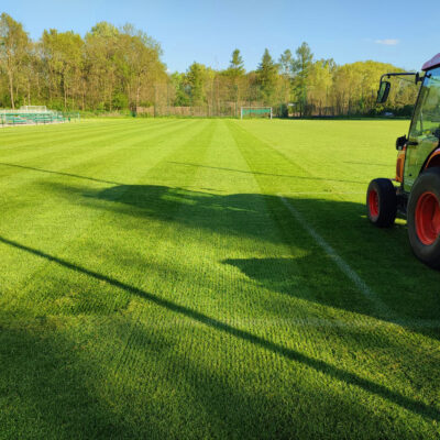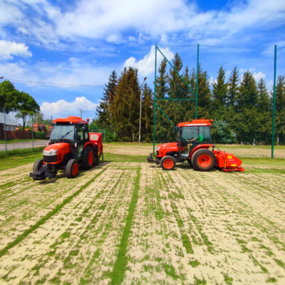 Prace powierzono specjalistycznej firmie, zapewniając najwyższą jakość usługi pielęgnacji. Na boiskach przeprowadzono wertykulację razem ze zgrzebłowaniem, które miały na celu usunięcie martwej materii i filcu trawnikowego, aerację wgłębną, czyli nakłucie darni bolcem pełnym na głębokość do 15 cm, rozluźnienie profilu glebowego i napowietrzenie murawy, a także piaskowanie razem ze szczotkowaniem – wyrównanie nierówności płyty boiska i rozszczelnienie górnej warstwy profilu.