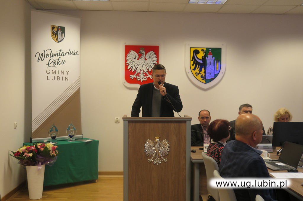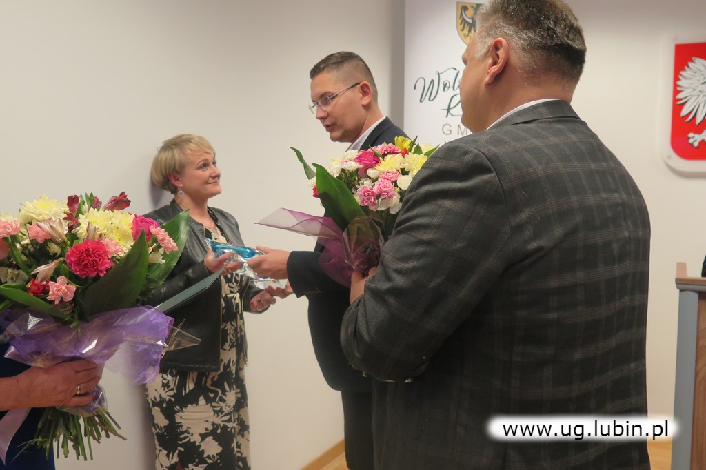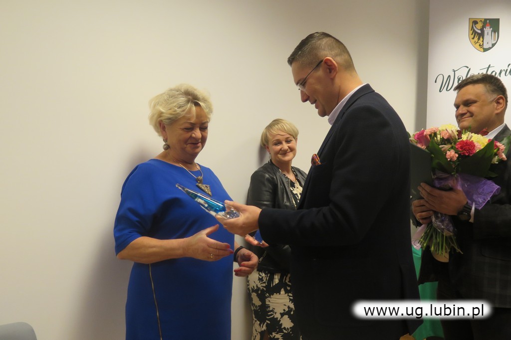 Uroczystego wręczenia symbolicznych statuetek dokonał wicewójt Bartosz Chojnacki i Norbert Grabowski, przewodniczący Rady Gminy Lubin.