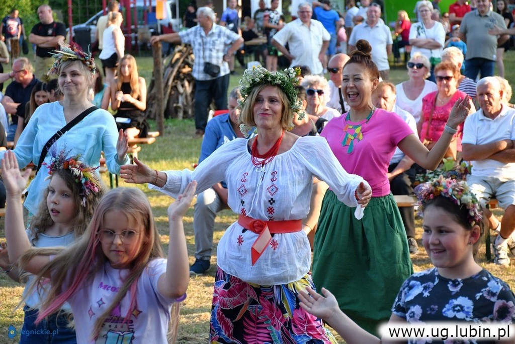To właśnie w tej malowniczej miejscowości na przybyłych gości czekało wiele atrakcji – muzyka ludowa na żywo, przejazd tematycznymi pojazdami, średniowieczna wioska, warsztaty wyplatania wianków, tradycyjny korowód, puszczanie wianków nad rzeką Czarna Woda, stoiska artystyczne, plener malarski oraz taniec ognia. Zespoły Lejdis i Zachęta przywołały tradycje słowiańskiego święta, dawnych obyczajów a także popularnych piosenek muzyki rozrywkowej. Rozśpiewane Pastuszki oraz Aleksandra Klisowska, Krzysztof Polański i Wiktoria Polańska, czyli Trio z Gogołowic dołożyły niezwykłe interpretacje światowych i rodzimych przebojów.