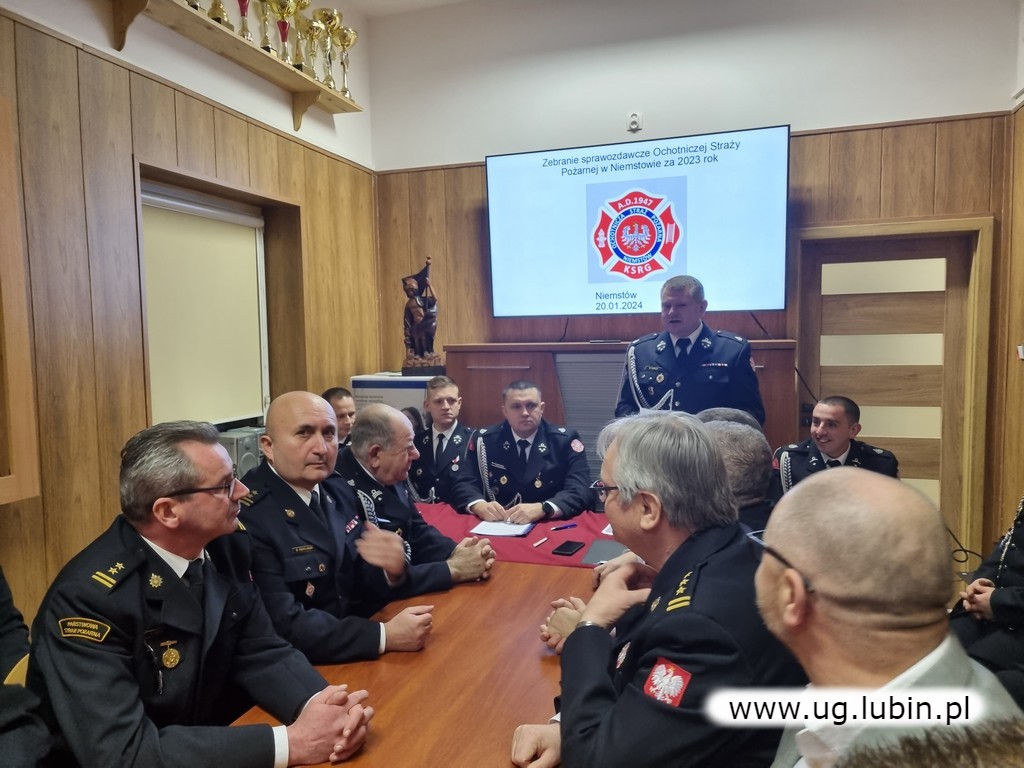 Dzień zebrania sprawozdawczego OSP Niemstów było jednocześnie pierwszym dniem zasłużonej emerytury dla generała Marka Kamińskiego – dotychczasowego komendanta wojewódzkiego PSP we Wrocławiu a wcześniej wieloletniego komendanta powiatowego w Lubinie. Symbolicznie z druhami żegnał się także po 35 latach pracy Bogdan Ćwikliński dowódca lubińskiej jednostki, który także przechodzi w stan spoczynku. Padło wiele słów podziękowań i była to okazja do wielu wspomnień.